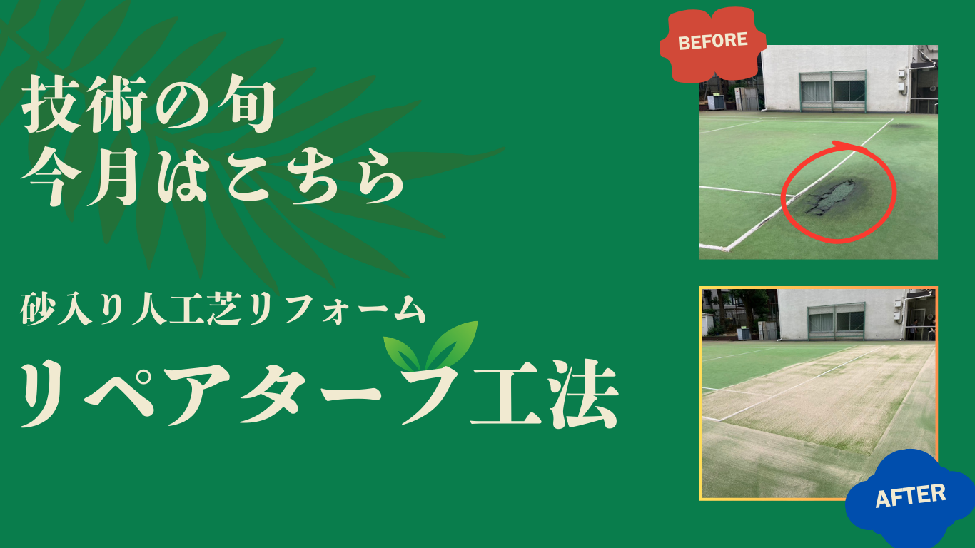 当社は砂入り人工芝の小さい部分補修工事でも喜んで対応いたします。また人工芝だけでなく、防球ネット・防砂ネットの設置・補修工事、その他テニスコートに関連する設備についても承っております。人工芝の損傷がある場合は早めの対応をおすすめいたします。砂入り人工芝の部分補修はソイルリサイクル工業のリペアターフ工法をご採用ください。