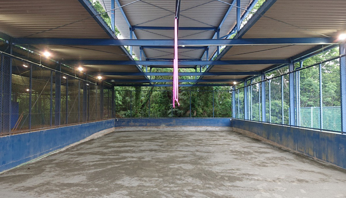 これまでブルペンとして使用されており、バッティングマシンを設置して2名打ちのバッティング練習場として使用されていました。建設後数十年経っている施設で、内部のネットも損傷が激しく、室内の圧迫感、土埃がひどいという監督・選手からの意見があがっていたことから、当社のファイングラスコート(ロングターフバージョン)でロングパイル人工芝舗装と内部ネットの全面改修工事をすることになりました。